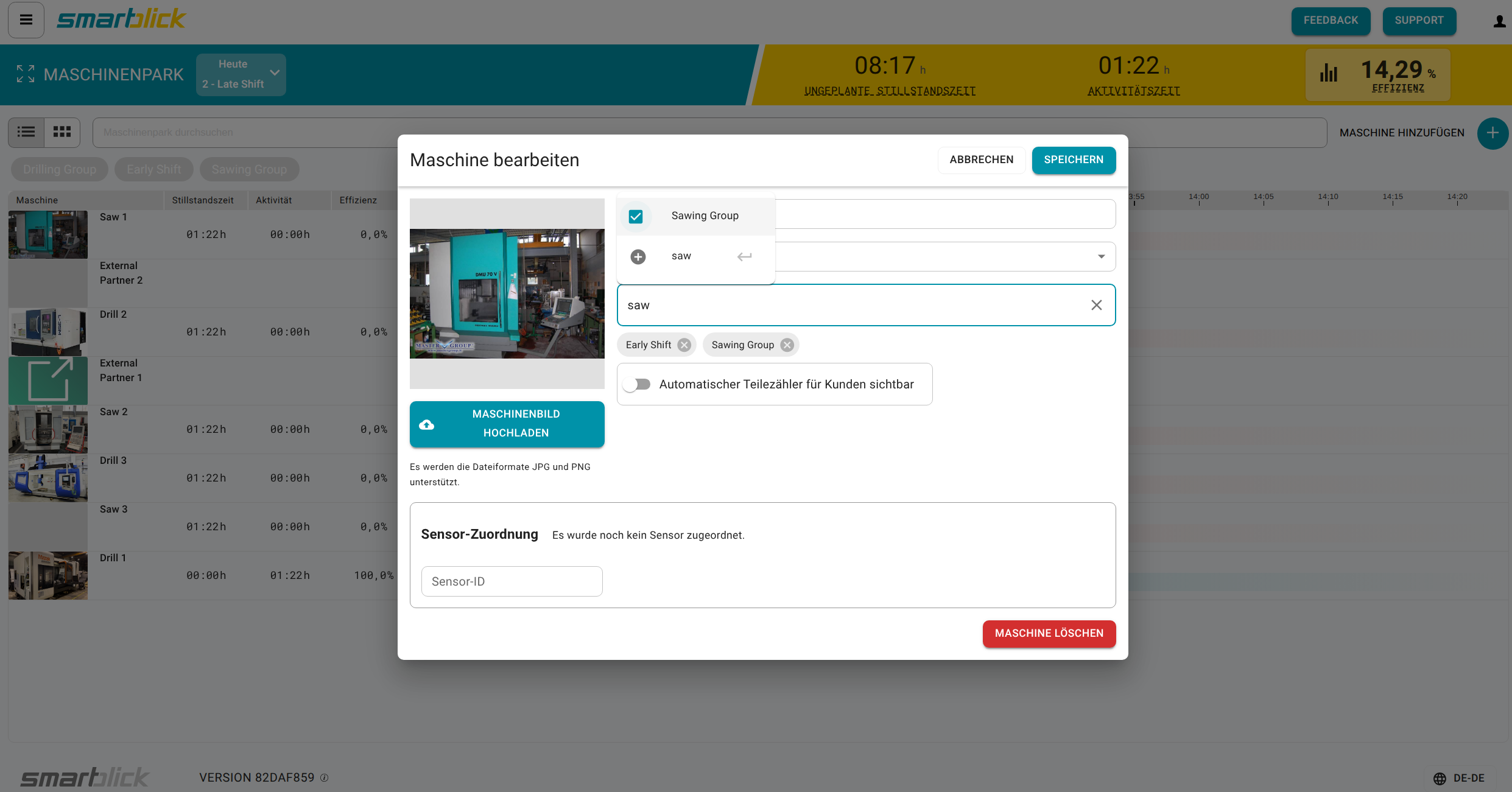 Ein neues Feature namens "Maschinengruppen" wurde eingeführt, um die Produktionsplanung in Fertigungsumgebungen zu vereinfachen. Dieses Update ermöglicht es Managern, logische Gruppen von Maschinen zu erstellen – beispielsweise eine „Sägruppen“ – und Arbeitsschritte auf Gruppenebene zuzuweisen. Maschinenbediener können somit Arbeitsschritte an jeder Maschine innerhalb ihrer zugewiesenen Gruppe einsehen und ausführen, was flexiblere und effizientere Arbeitsabläufe unterstützt.