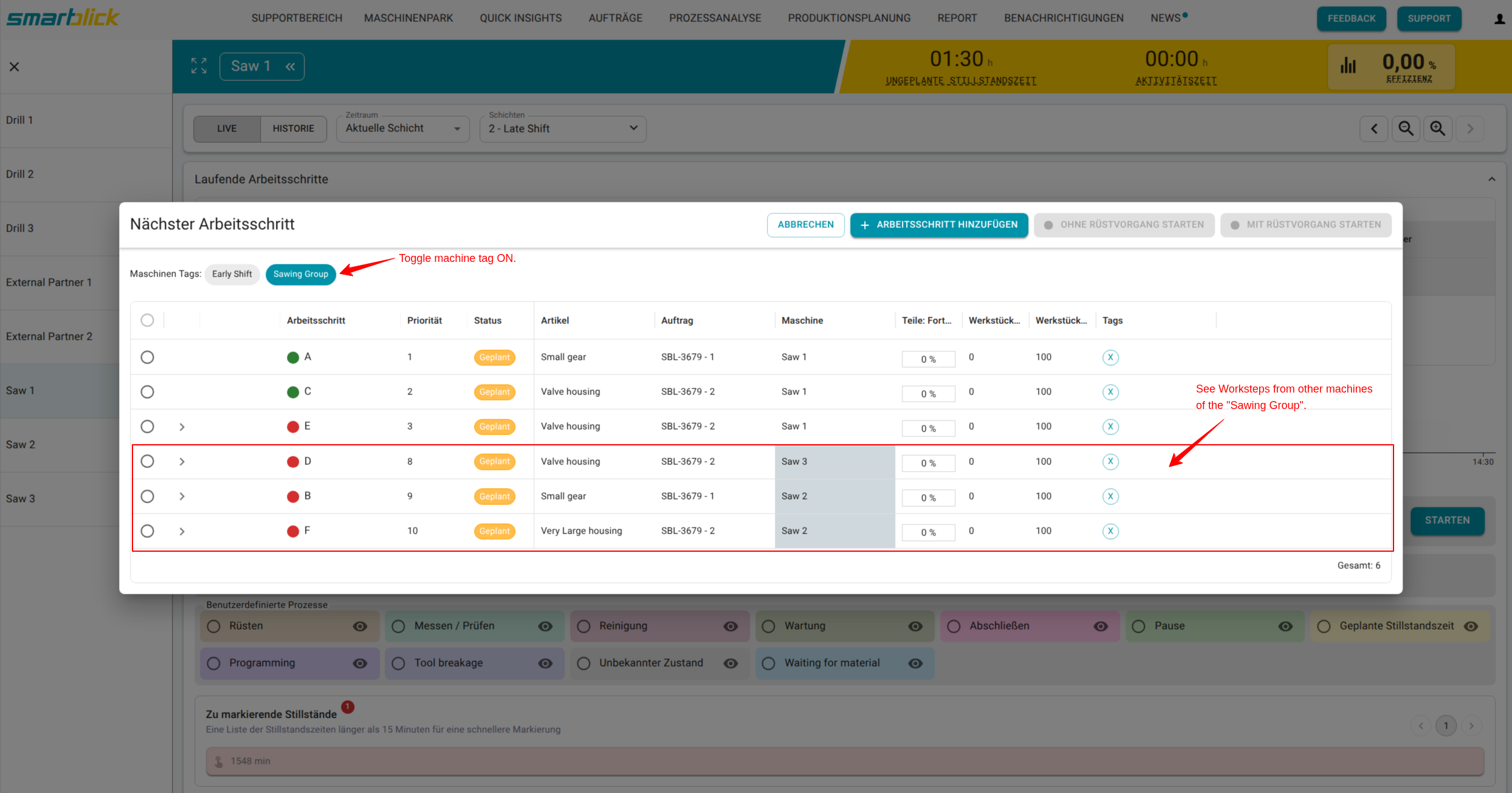 - Smartblick verteilt die Arbeitsschritte automatisch auf die Maschinen innerhalb der Gruppe (Bild 3)
